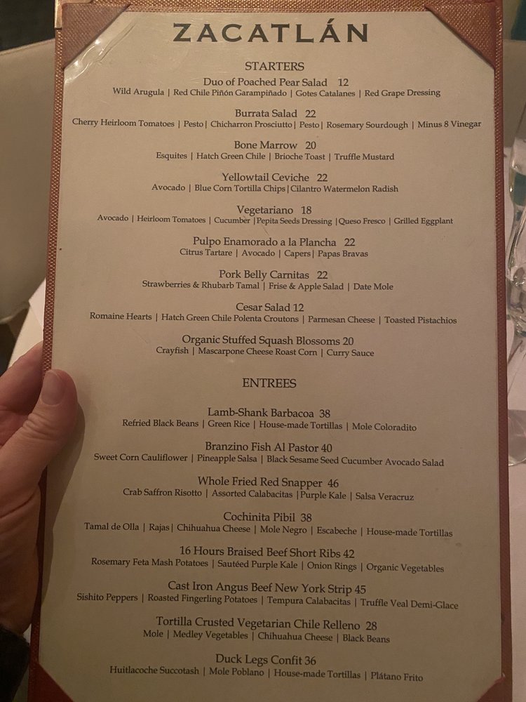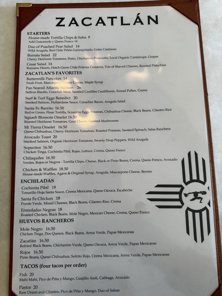 Zacatlán Restaurant is a popular spot in Santa Fe, offering a mix of Mexican cuisine with a gourmet twist. With a diverse menu ranging from Bone Marrow Esquites to Duck Legs Confit, every dish showcases unique flavors and high-quality ingredients. The desserts, like the Bread Pudding Brioche Tamal and the Buñuelo De Viento, are a delightful way to end your meal. Customers praise the attentive service and overall affordable prices. While some reviews mention minor imperfections in certain dishes, the generous portions and New Mexico-inspired sauces make up for it. The classy yet inviting ambiance, combined with the extensive list of amenities like outdoor seating and happy hour specials, create a memorable dining experience at Zacatlán Restaurant. Whether you're craving breakfast, brunch, or a hearty dinner, this restaurant promises to deliver a satisfying meal in a historic setting.